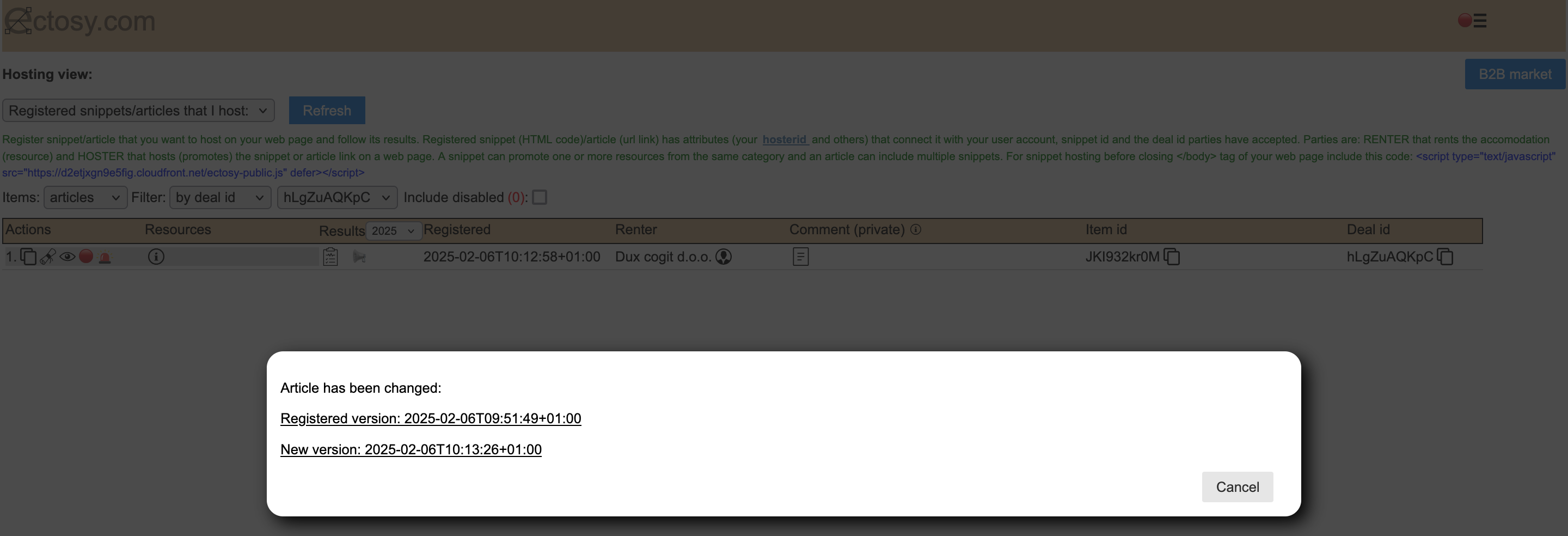 4. As with the snippets, renters should coordinate in advance all article changes with the hosters that have connected deals.