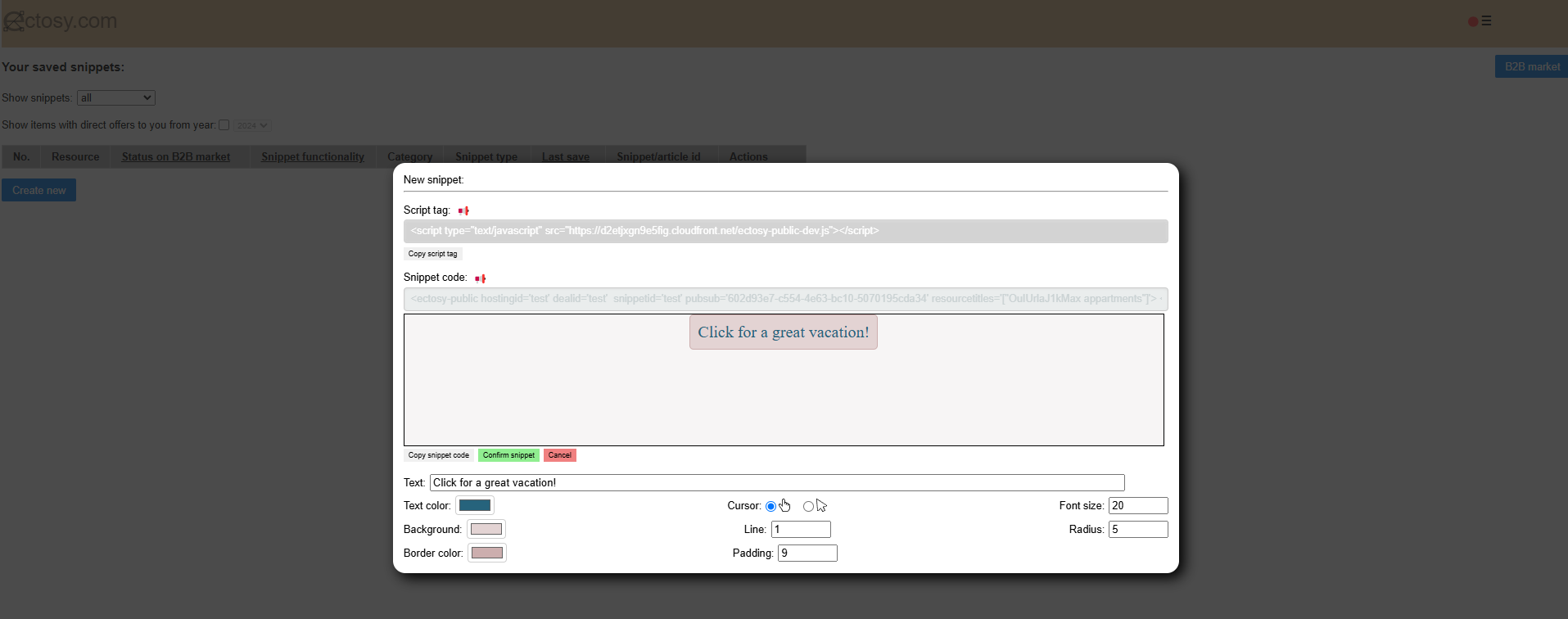 Feel free to click on the snippet to test it. Save snippet by clicking on the Confirm snippet button.
