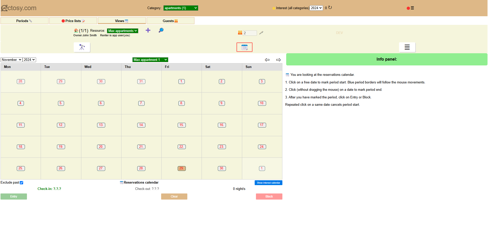 Renter dashboard is a part of the application that allows renters to view, create and modify data that is important to them (tourist resources, reservations, interests, customers, price lists etc.).