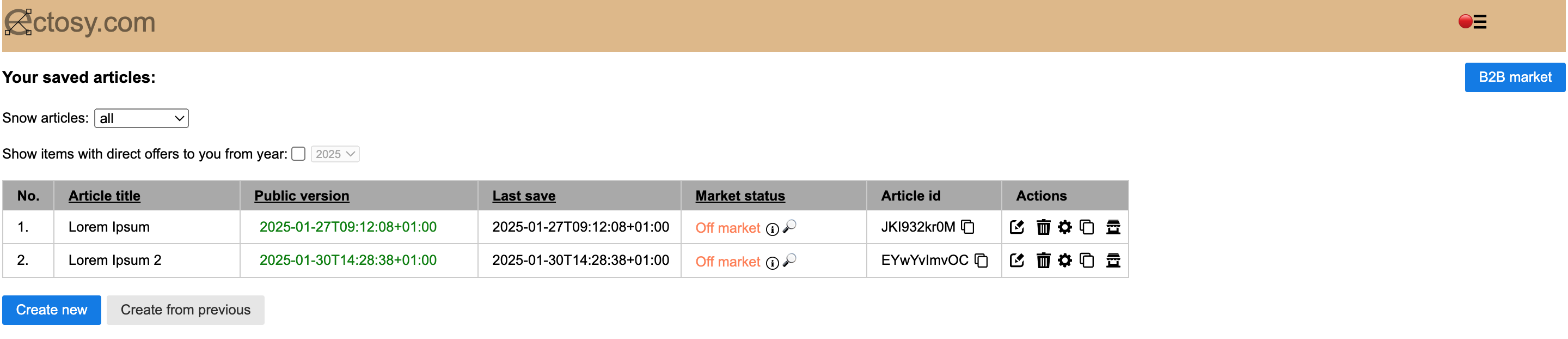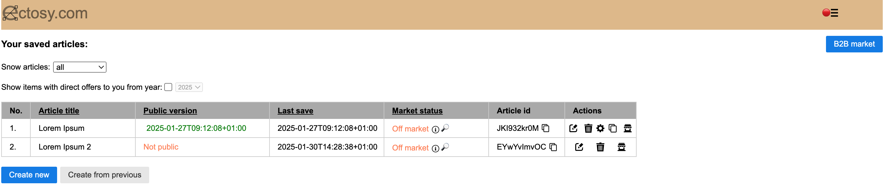 However, renter cannot disable a snippet/article while it is published on the B2B market. Of course, as it follows, disabled snippet/article cannot be published on the B2B market.