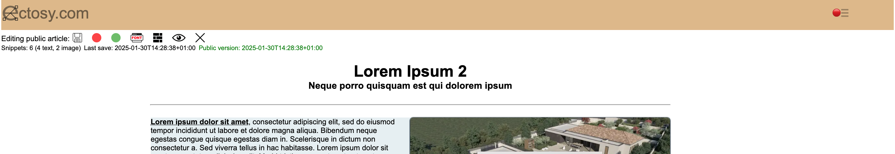 Article can be saved as private (with the disc icon) or public (with the 🟢 icon). Public articles can be accessed over Internet with their urls.