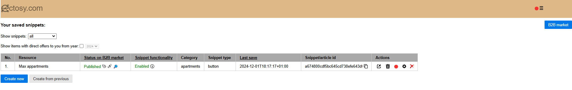 Renters (owners or managers of tourist accomodation) can choose to offer their snippets and articles on the B2B market. Hosters (owners or managers of web pages) can do the same with their web pages.