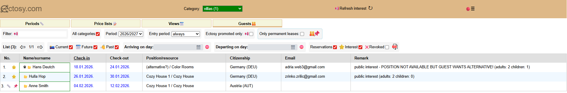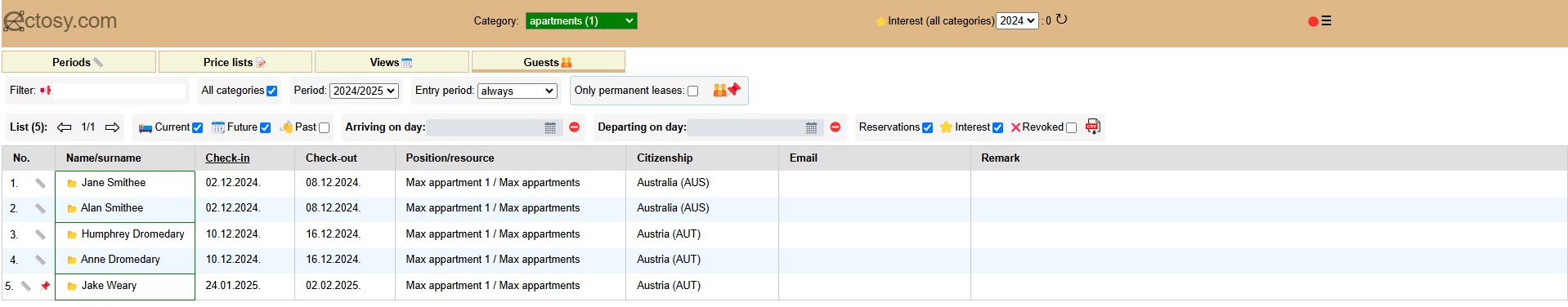 Permanent lease period enables the lesee to exclusively use the position within the lease period whenever he wants. His concrete arrivals and departures are registered as reservations through the usual calendars.