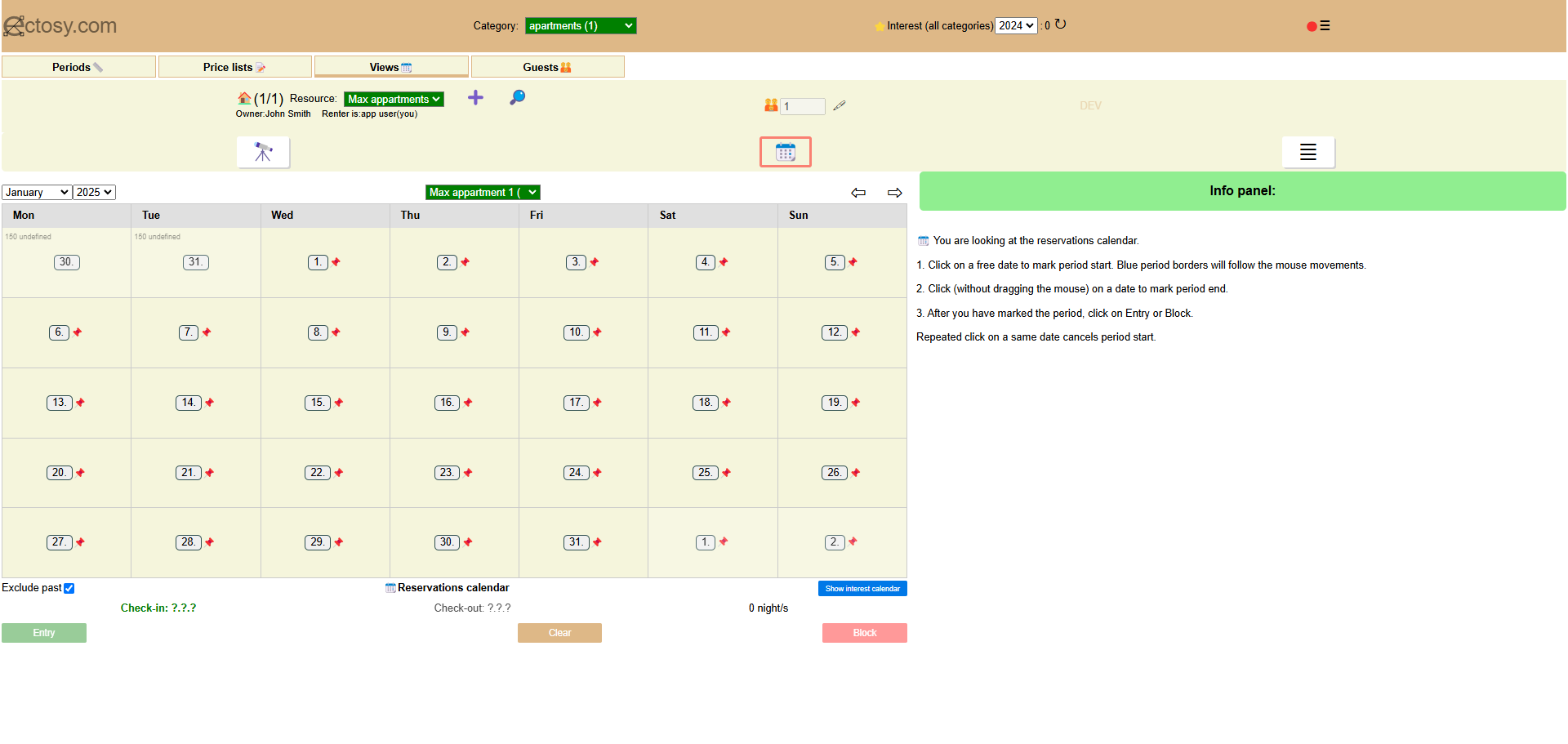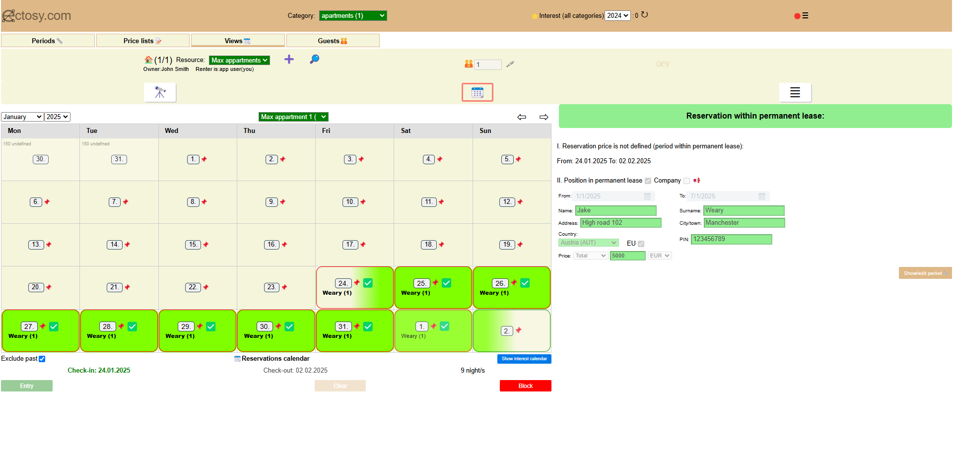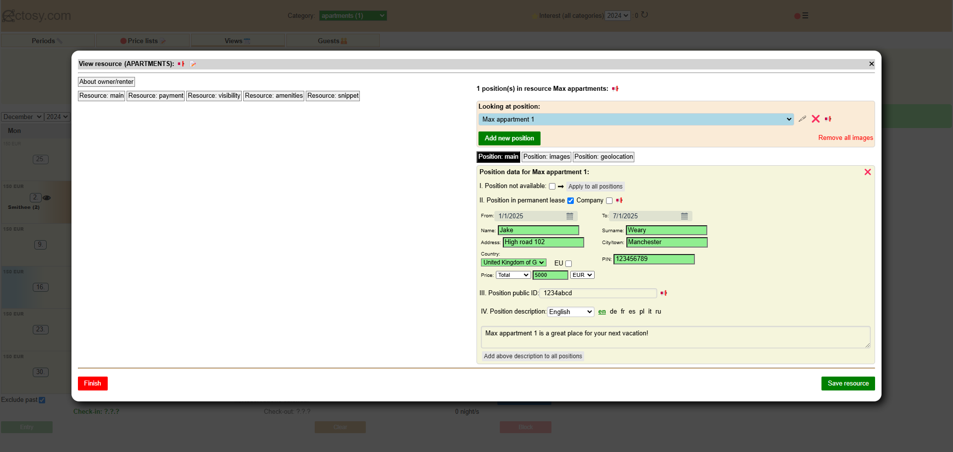 In its settings a position can be marked to be in permanent lease for a specific period not shorter than 60 days. Specific person is designated as the lesee and the price can be entered as total, annual or seasonal.