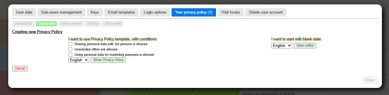 Renters who want to create and use snippets or articles have to define their Privacy policy (at least in English) regarding the usage of publicly collected personal data through expressed interests.