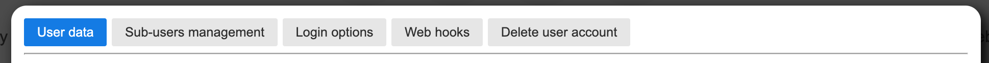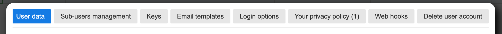 Under 'User' in renter dashboard you will find a set of various options: User data, Sub-users management, Keys, Email templates, Login options, Your privacy policy, Web hooks and Delete user account.