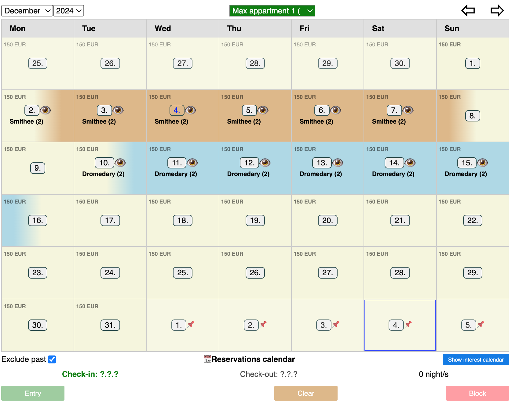 Renters have access to the Stays analytics data under the Options icon ≡ (top right of the screen). For example, you have two reservations in the December: